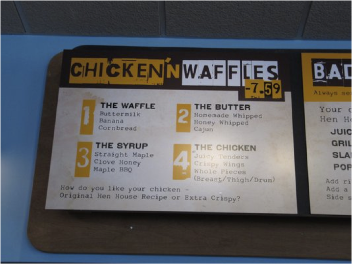 The genius combination that is waffles and chicken wings had never occurred to me until a visit to the Hen House, located just a stone’s throw down the street from Victoria’s Diner on Massachusetts Ave. in Boston. It is the very pinnacle of low-key, as well as cheap and deliciously unhealthy.