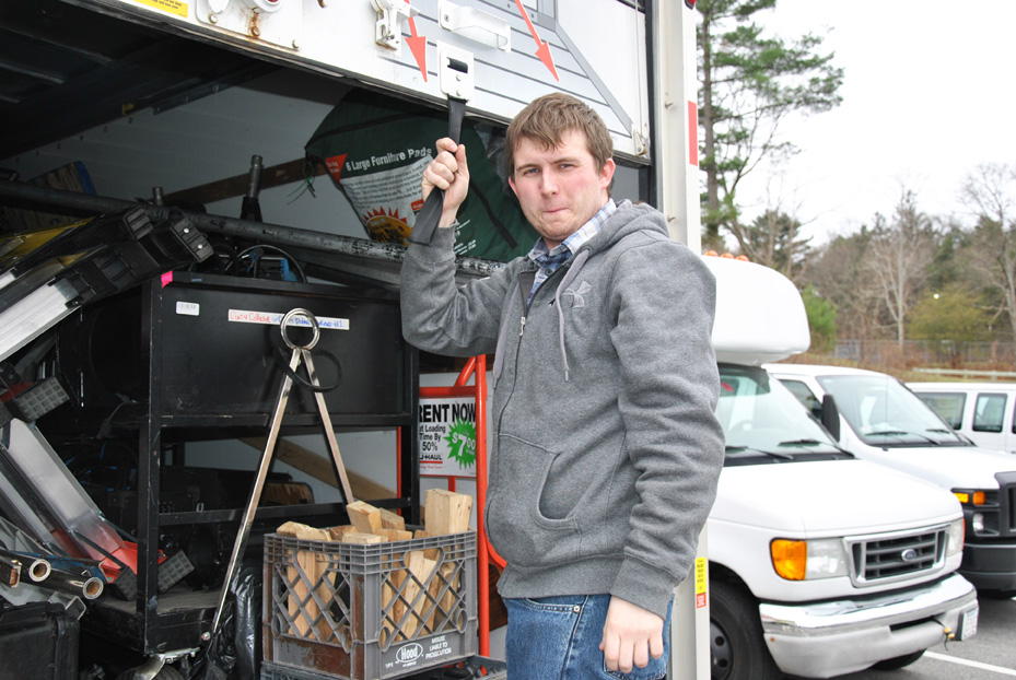 Chris Dolan drives his U-Haul truck full of film equipment back from a 12-hour day of filming in Quincy for his independent film “Moving Stone.”