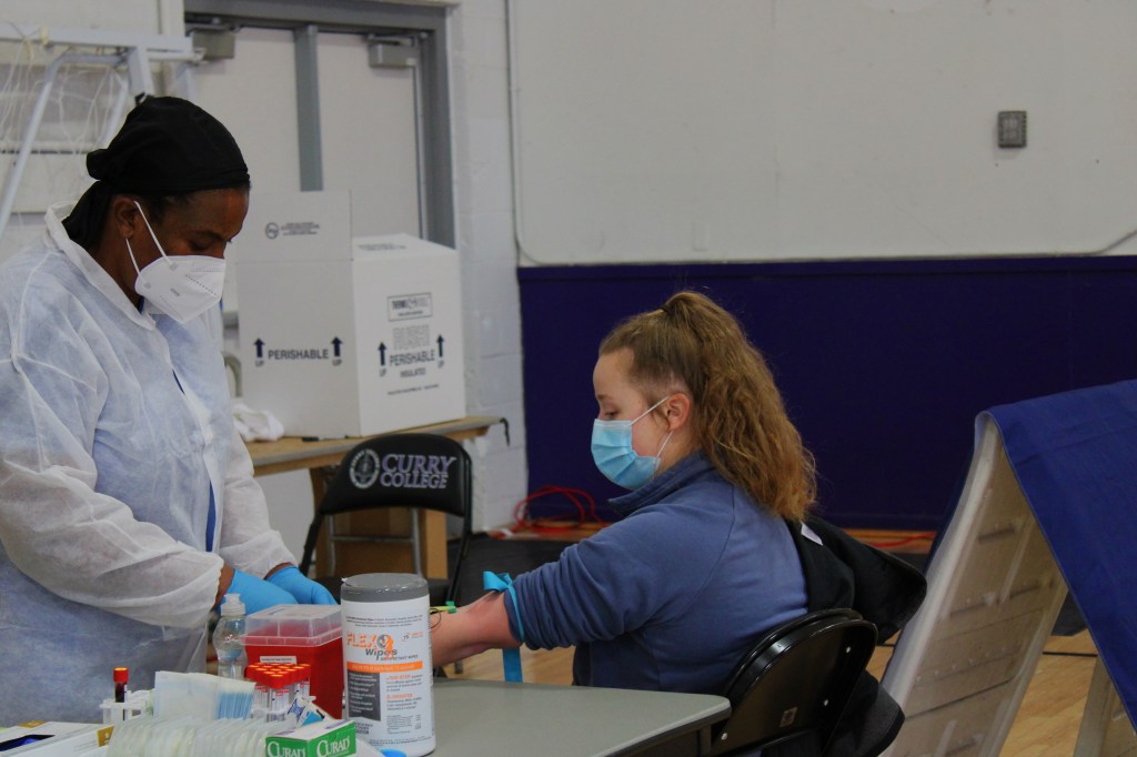 On Feb. 15 – 19, Emory University took post in the Miller Field House to conduct a research study on Curry students, faculty and staff with COVID-19 antibodies. This is in an effort to further delve into information about COVID-19. More than 450 Curry College volunteers agreed to have two vials of blood, taken by a trained phlebotomist, drawn, and receive news of their antibody status within two weeks of testing.